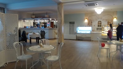 W środku Restauracji znajduje się również kawiarnia, w której mogą Państwo odnaleźć miejsce dla chwili relaksu przy pysznej kawie oraz odrobinie słodkości, gdyż w ofercie posiadamy również desery i lody. Zapraszamy serdecznie."