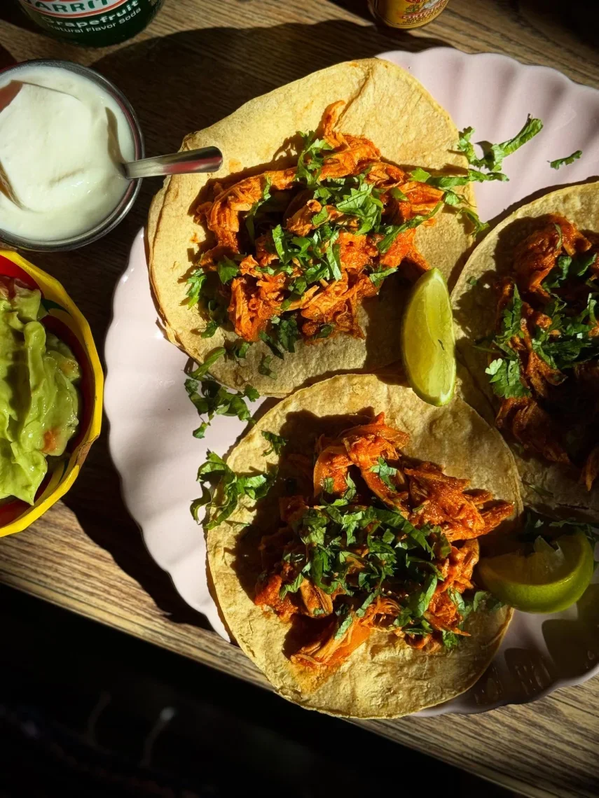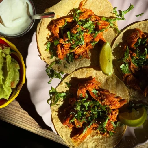 Nasze najnowsze tacos De Tinga De Pollo to trzy aromatyczne tortille kukurydziane wypełnione delikatnym, szarpanym kurczakiem duszonym w pikantnym sosie pomidorowym z chili. Wyrazi... Zobacz więcejsty smak Meksyku podkreślony świeżą kolendrą, który przeniesie Cię prosto w smaki meksykańskich uliczek. Idealne połączenie ostrości, soczystości i świeżości w każdym kęsie 🇲🇽🌮