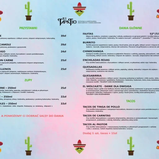 W samym sercu Szczecina stworzyliśmy EL TAPATIO przytulną restaurację meksykańską, piekielnie smaczną kuchnię, opartą na oryginalnych recepturach kuchni meksykańskiej serwowanej przez rodowitego meksykanina.