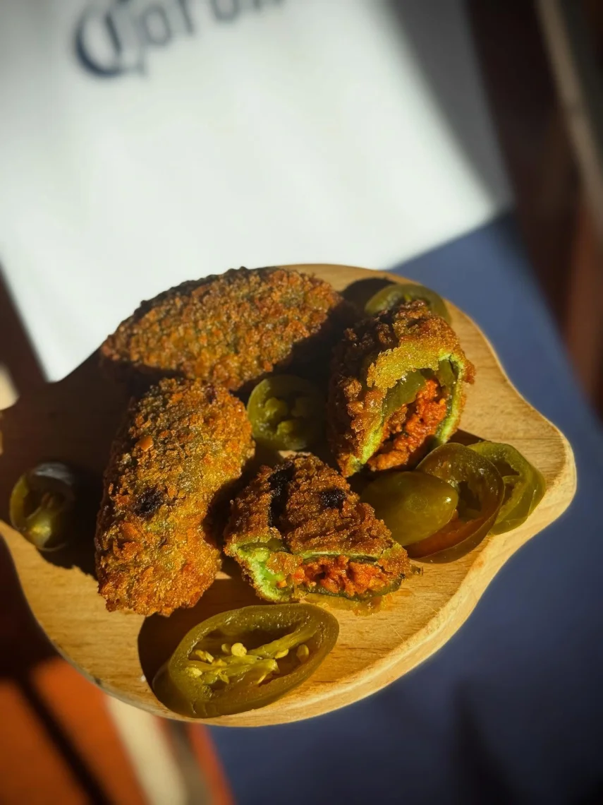 Jalapeños con carne to nasza autorska interpretacja klasycznych meksykańskich smaku. Soczyste papryczki jalapeño nadziewamy aromatycznym farszem z mielonej wieprzowiny, świeżej kol... Zobacz więcejendry i żółtego sera, a następnie obtaczamy je w chrupiącej panierce z panko. Dzięki temu połączeniu ostrość jalapeño spotyka się z pełnią mięsa i delikatnie dającym o sobie znać serem, a całość zamyka złocista, lekka i wyjątkowo chrupiąca skorupka 🌶️