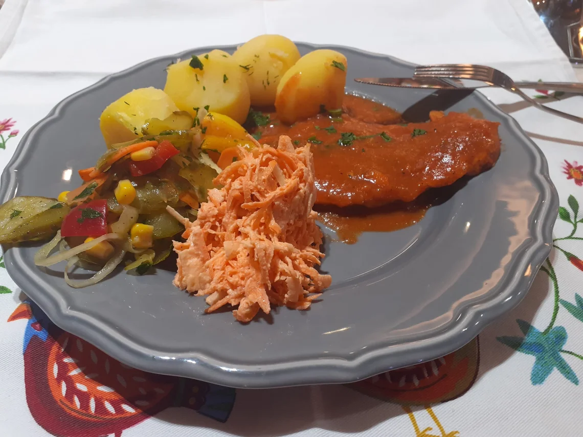 Nasza kuchnia wykorzystuje typowe polskie warzywa, takie jak buraki, ogórki i kapustę, oraz charakterystyczne przyprawy, takie jak czosnek, chrzan, koperek, jałowiec i pieprz. W naszym lokalu serwujemy klasyki kuchni polskiej, takie jak kotlet schabowy, kotlet po myśliwsku, stek wieprzowy, placki ziemniaczane, pierogi z różnymi nadzieniami oraz gulasz wieprzowy ?