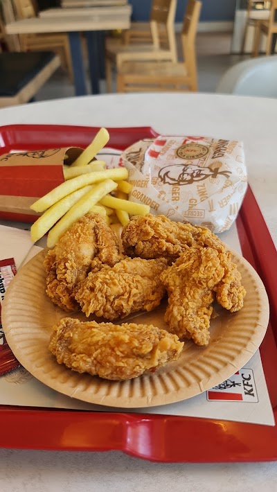 "Spróbuj legendarnego kurczaka w chrupiącej panierce w restauracjach KFC. Tajemnica doskonałego smaku jedzenia kryje się w procesie jego przygotowania, dlatego w naszych restauracjach wszystko robimy od podstaw. Nasze dania pochodzą od sprawdzonych dostawców, dzięki czemu na Wasze stoły trafia świeże i pyszne jedzenie. Codziennie sami ręcznie przygotowujemy mięso, selekcjonujemy składniki i kompletujemy zamówienie. W naszym menu znajdziesz dania na każdą porę dnia: od oferty śniadaniowej z pobudzającą kawą, przez kanapki Grander z soczystym kurczakiem, warzywami i pysznym sosem, po orzeźwiające Shakes w wielu smakach. Odwiedź KFC w okolicy lub zamów jedzenie z dostawą!"