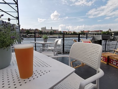 Cocktaile, piwo, pizza i przekąski na wodzie z piękną panoramą Szczecina w tle.
