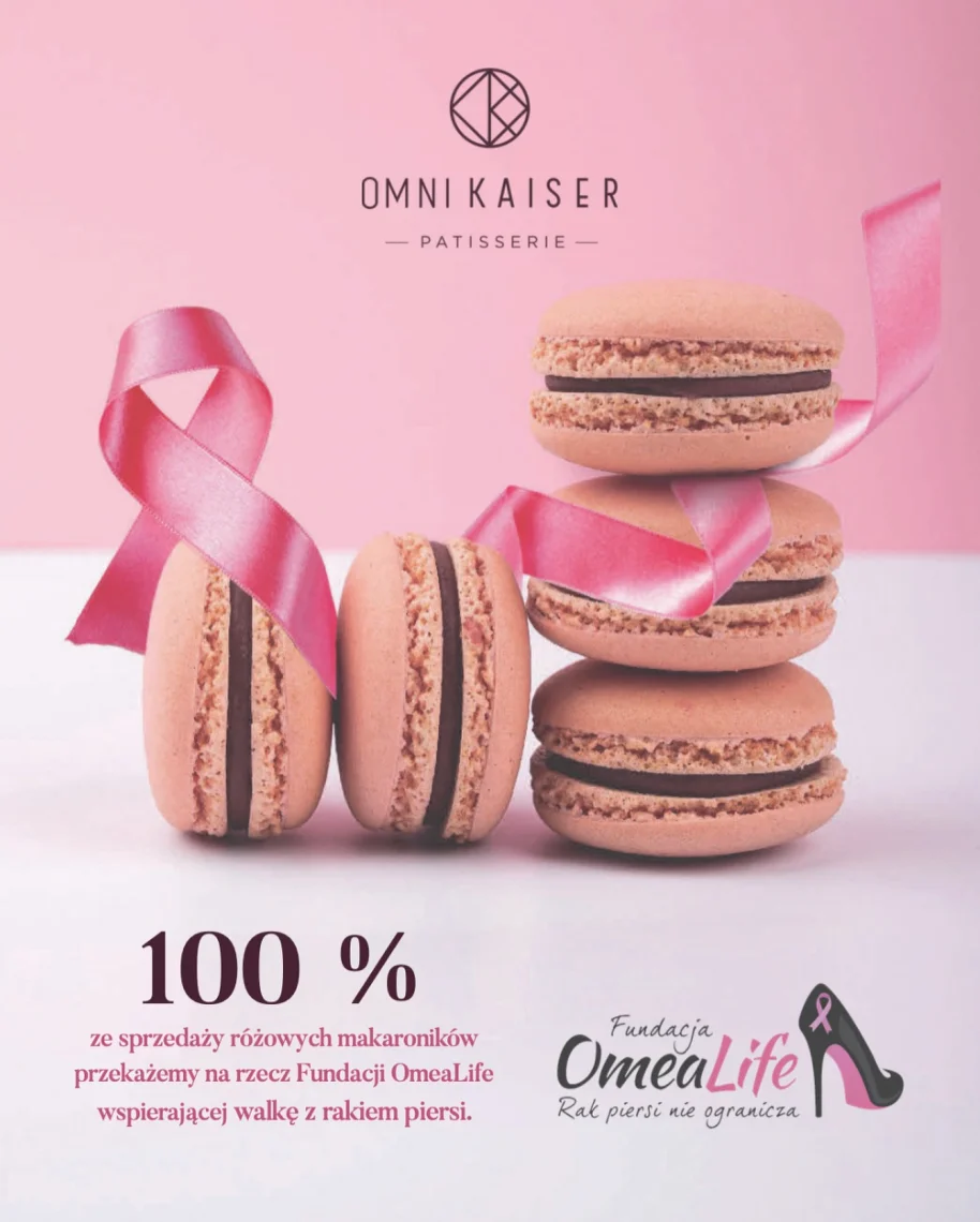 Październik to miesiąc świadomości raka piersi – dlatego w Omni Kaiser już trzeci rok z rzędu startujemy ze sprzedażą limitowanej edycji różowyc... Zobacz więcejh makaroników ze wstążką, których przychód ze sprzedaży przekażemy na cel charytatywny.