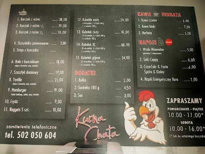 "Kurna Chata to idealne miejsce, aby zaspokoić Państwa potrzeby związane z kurczakami. Serwujemy pyszne kurczaki z rożna, skrzydełka z kurczaka, w tym skrzydełka panierowane, tortillę z kurczaka, burgery z kurczaka, szaszłyki z kurczaka z grilla i wiele innych. Dodatkowo kupić u nas można pyszne frytki. Nasze jedzenie jest przygotowywane ze świeżych składników i przyrządzane do perfekcji. Więc czy mają Państwo ochotę na szybką przekąskę, czy na obfity posiłek, w Kurnej Chacie mamy wszystko pod kontrolą i z pewności zaspokoimy Państwa potrzeby. Znaleźć nas można w Pile, na terenie województwa wielkopolskiego. Właścicielem jest Kamil Traczyk, a działamy od 2018 roku."